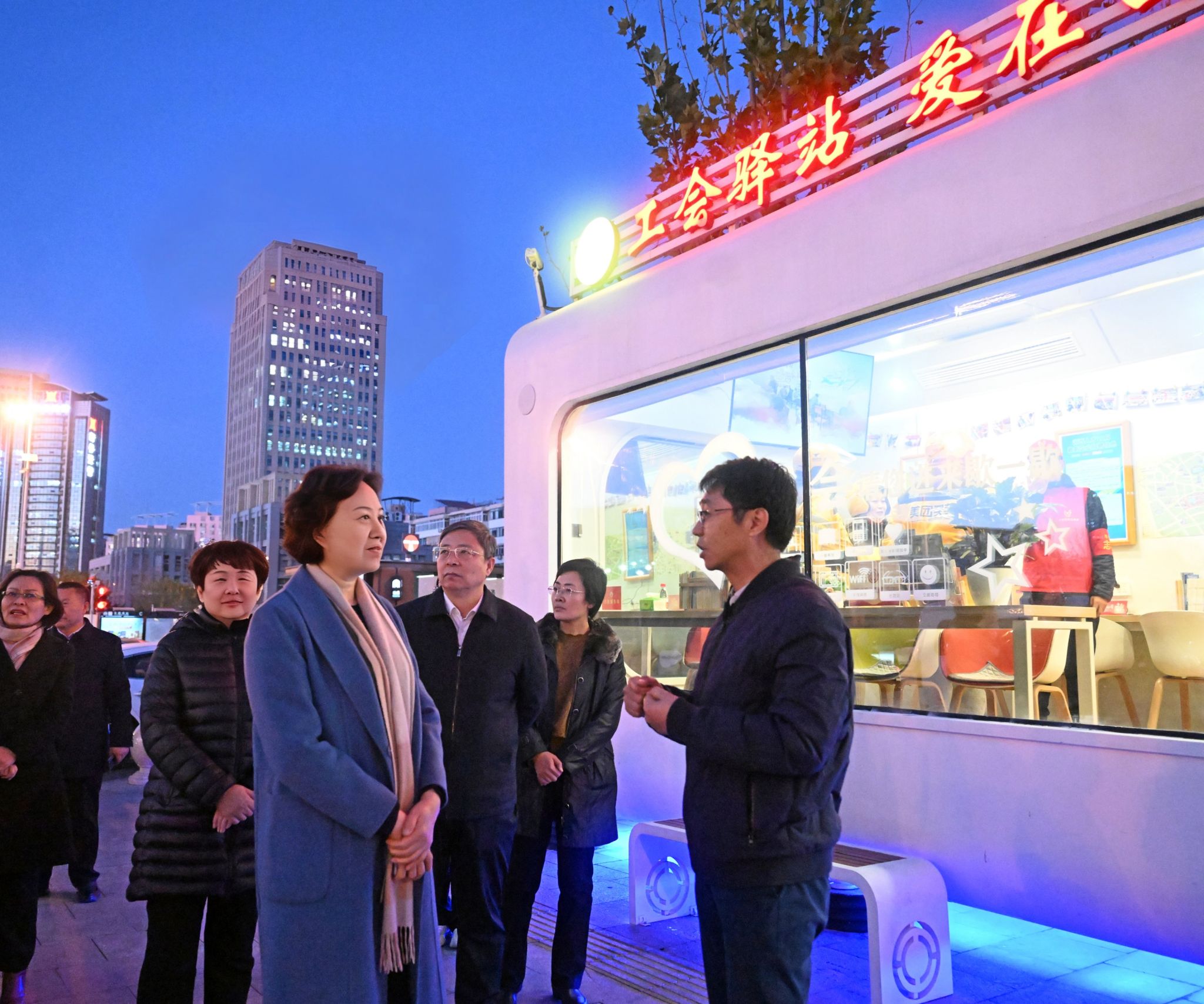 中央纪委国家监委驻中华全国总工会机关纪检监察组强化“两个责任”贯通协同,坚持以有力监督推动贯彻落实党中央重大决策部署。图为11月20日,该纪检监察组工作人员在天津市河西区文化中心工会驿站开展调研监督工作。 韩志忠 摄